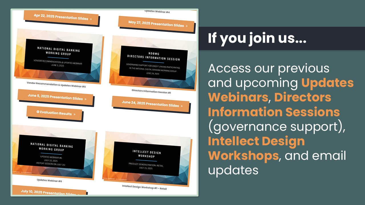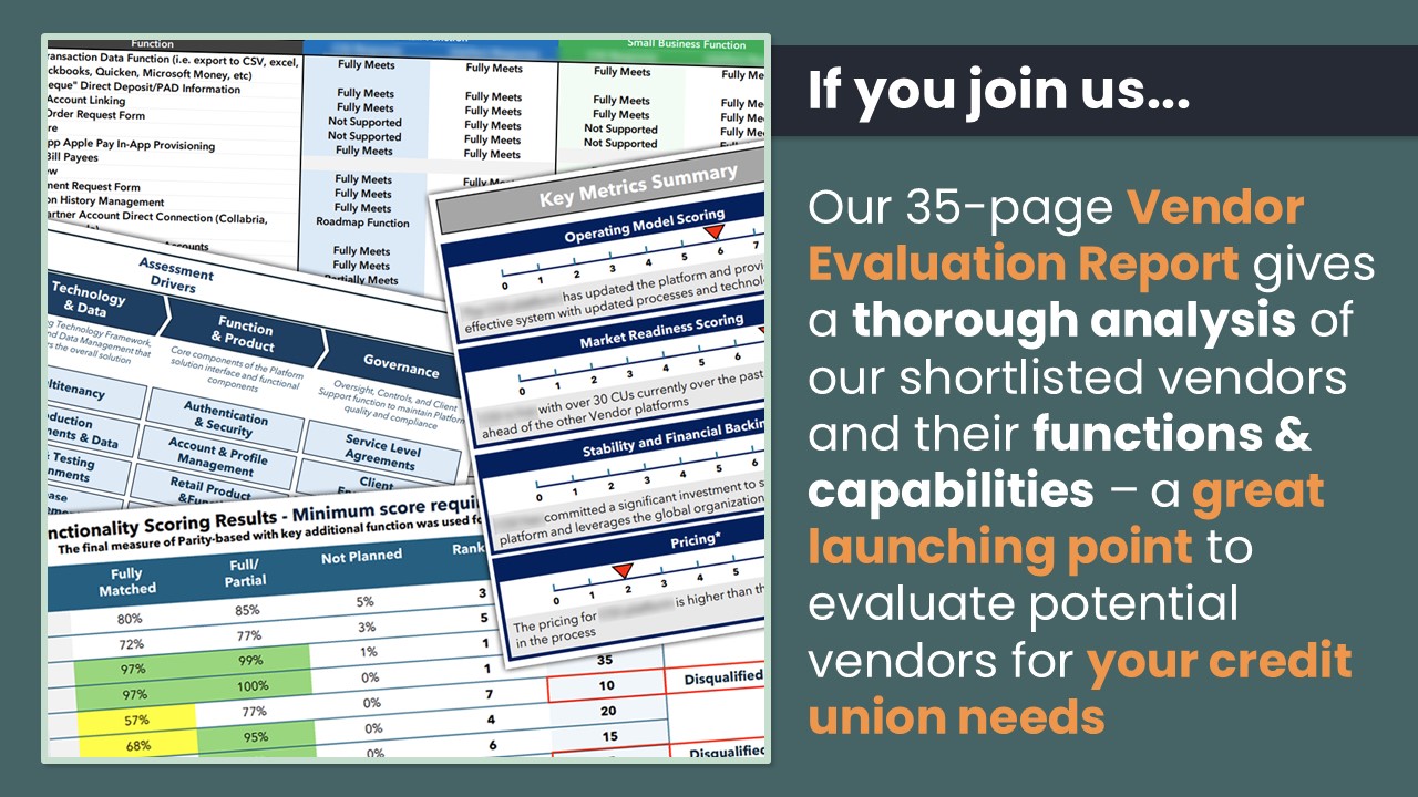 With a collective reach that includes credit unions, system partners, and technology vendors across the country, we struck a collaboration to explore how we could take advantage of our individual strengths to support credit unions through a digital banking transition. This group of interested parties aims to leverage shared expertise, streamline project management, and optimize resource allocation for a more efficient and effective evaluation process.